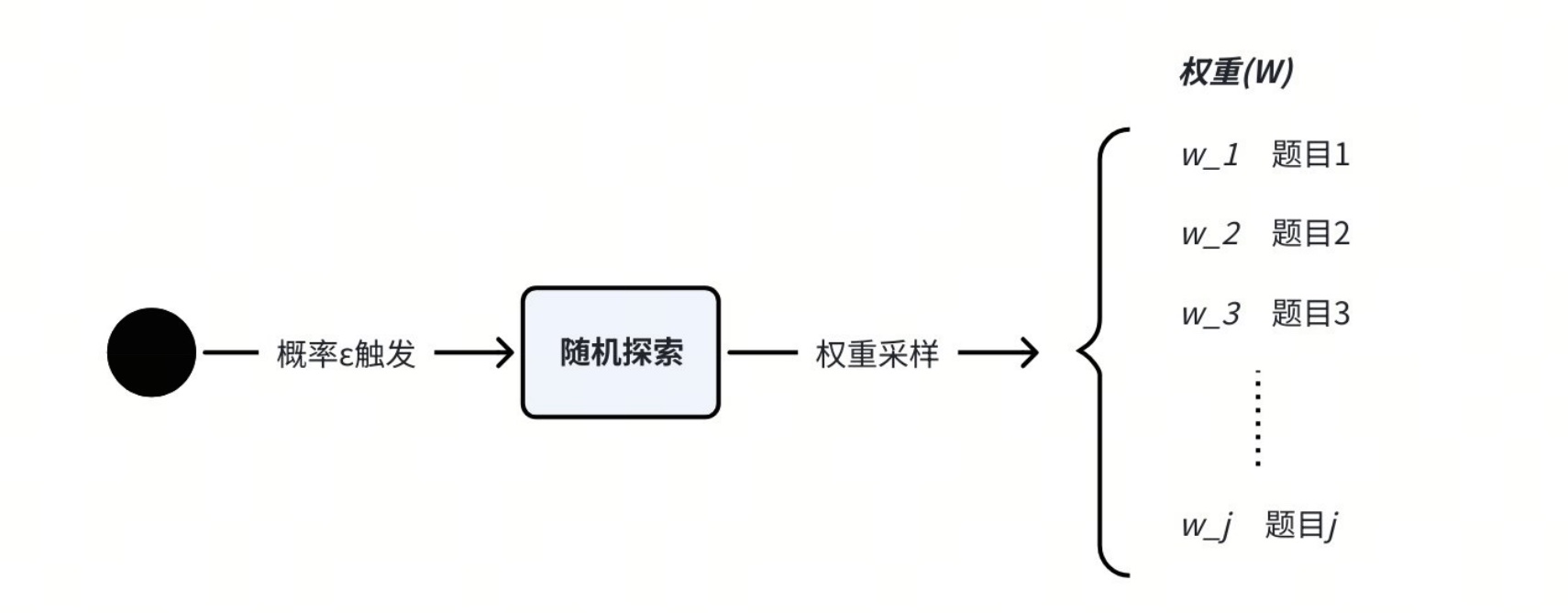 - 因此设计“随机探索”机制,有概率$e$会进行随机选题,以此生产无偏样本。
